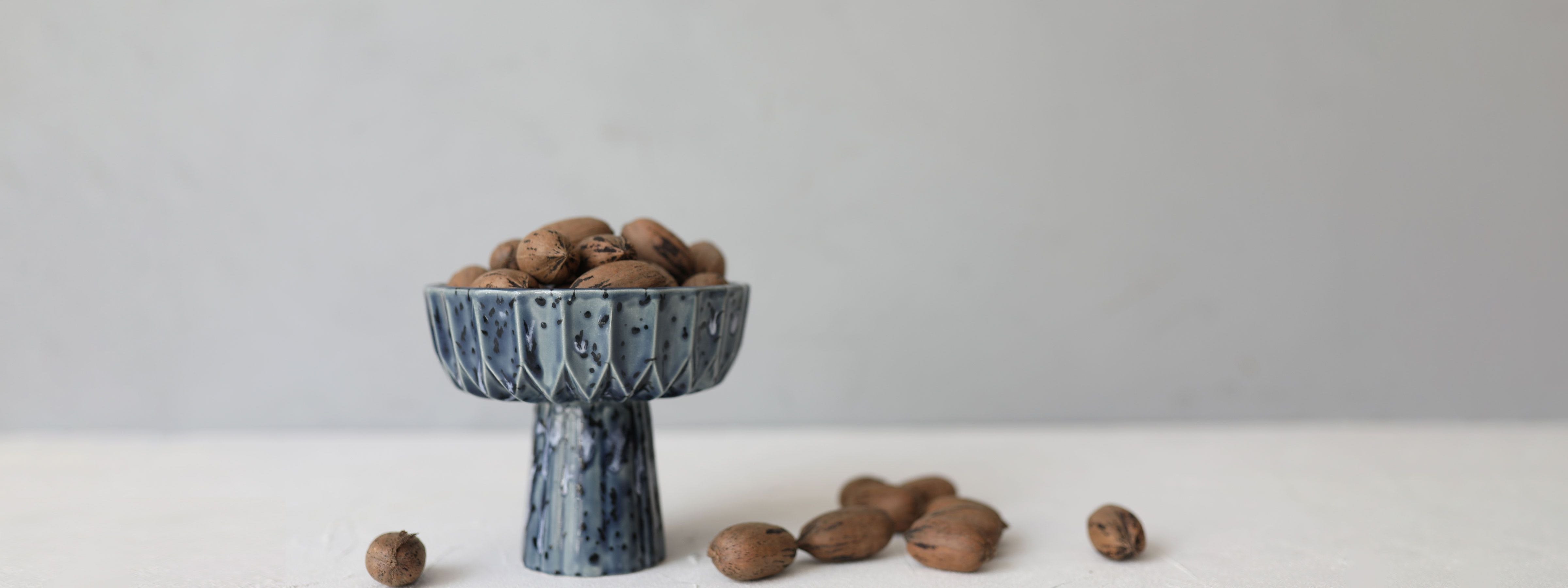 Anatoli Antik Mavi Küçük Boy Seramik Ayaklı Servis